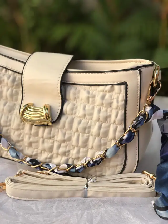 A Bolsa Bella Venezia Off-White é puro charme e estilo. Seu acabamento com textura frontal, corrente com lenço trançado e metais dourados fazem dela uma peça marcante e ao mesmo tempo delicada. A cor off-white com acabamento em costura contrastante oferece versatilidade e classe. Acompanha alça longa ajustável e pode ser usada tanto no ombro quanto na transversal. Ideal para ocasiões especiais ou para dar um toque de elegância ao look diário.