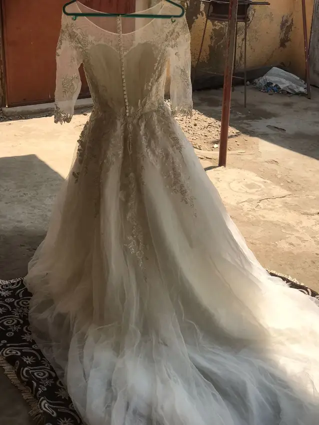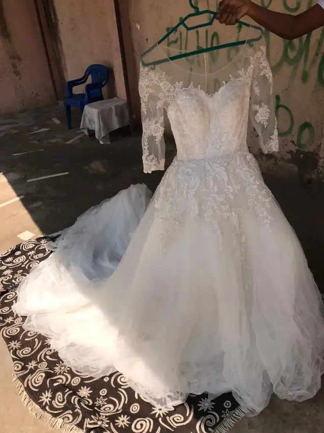 Este vestido de noiva branco faz parte de um lote de fardo, sendo uma excelente escolha para quem busca elegância a um preço acessível.